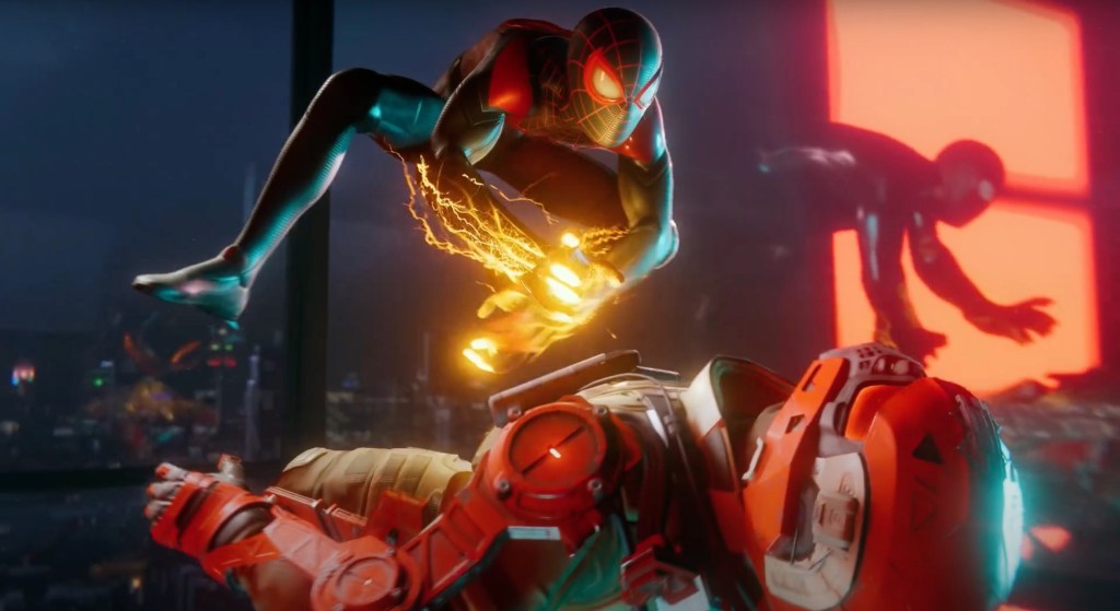 One particular scene shows that same orange electricity, and Miles is using it against a thug. A suit power? What does that mean for the scene in the beginning of the trailer? Speaking of suits, look at that beauty. I wonder if Insomniac will have unlockable suits in this game, as that was one of the highlights of Spiderman PS4.